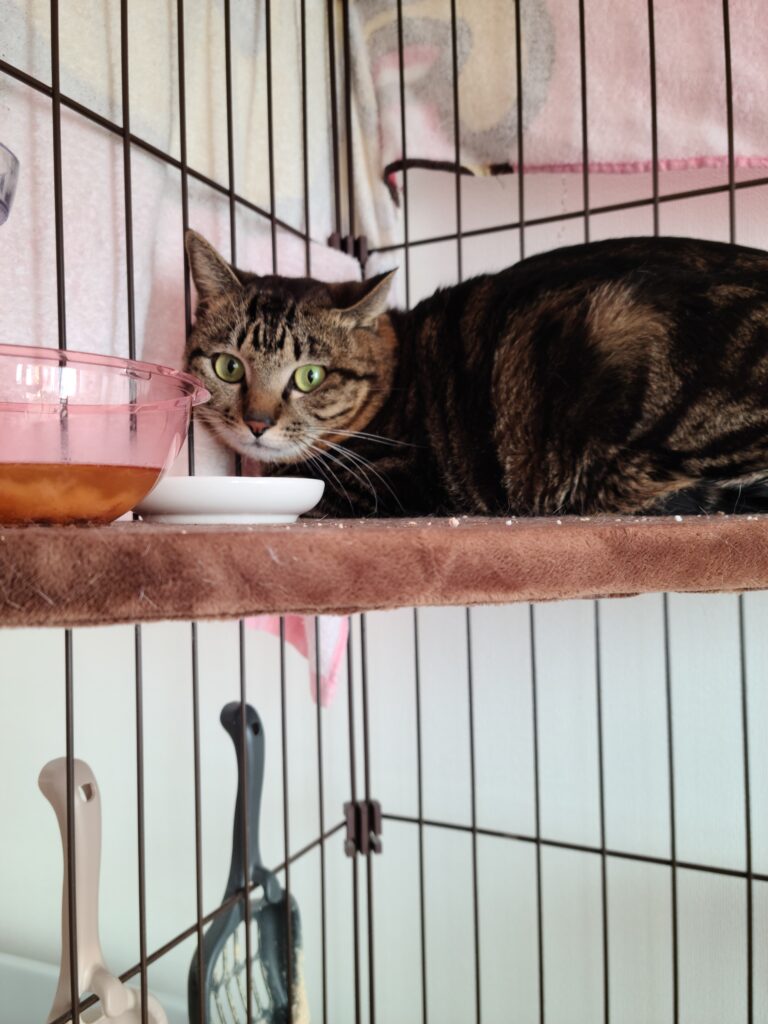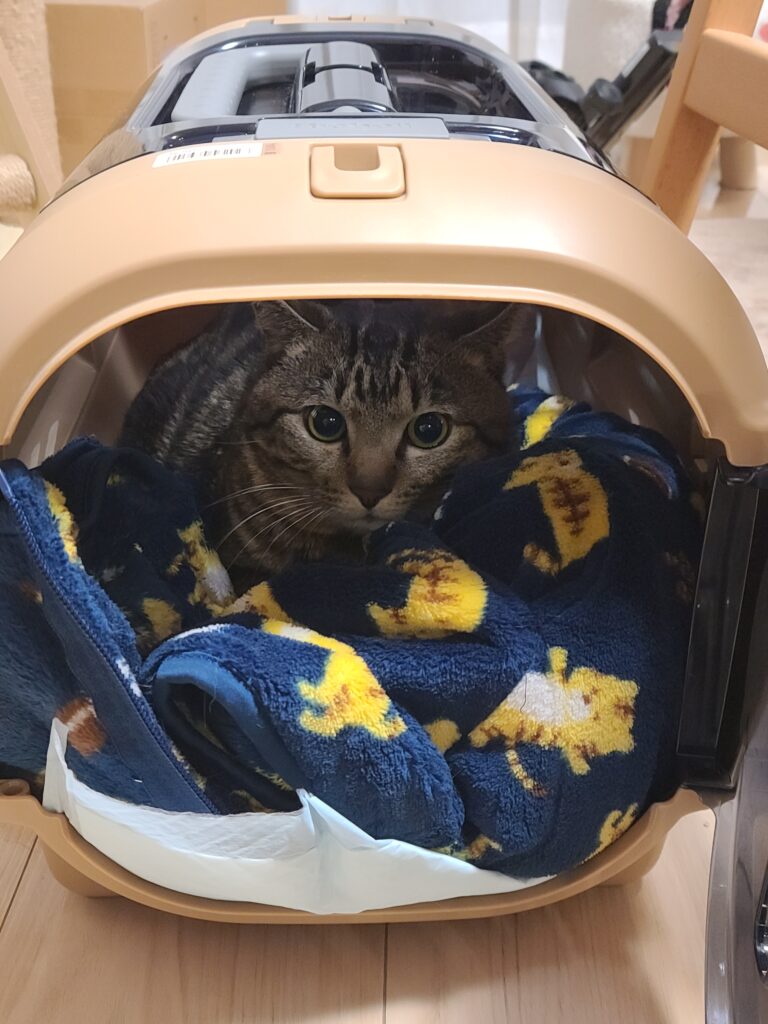 この日はとにかく寒くないようエアコンをかけ、水とごはんとトイレを用意してケージの中にキャリーごと入れて放置するしかない。